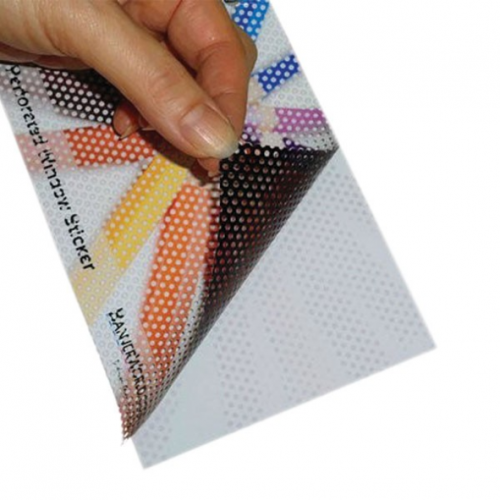 ADESIVO MICROPERFURADO TEM LARGURA MÁXIMA DE 1,35M PARA IMPRESSÃO.