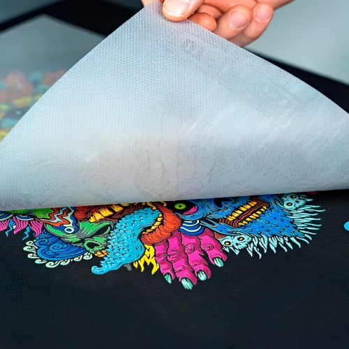 O processo de impressão por DTF envolve a impressão de uma imagem em um filme de transferência especial, que é posteriormente aplicado ao tecido por meio de calor e pressão. A tinta sólida do filme adere ao tecido, resultando em uma estampa durável e vibrante.
